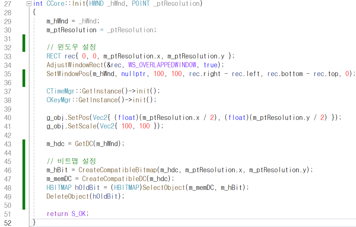 46번째 줄에서 CreateCompatibleBitmap 함수를 통해