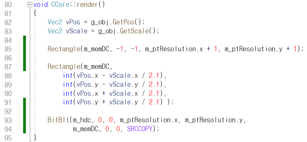 93번째 줄에서 BitBlt 함수를 통해 메인 윈도우에