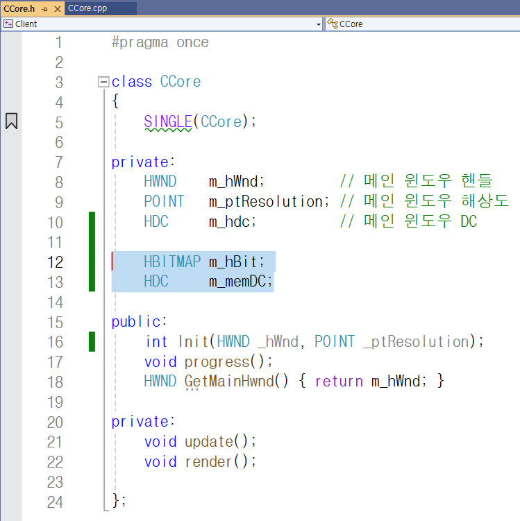 CCore 클래스에 HBITMAP형 멤버 m_hBit와