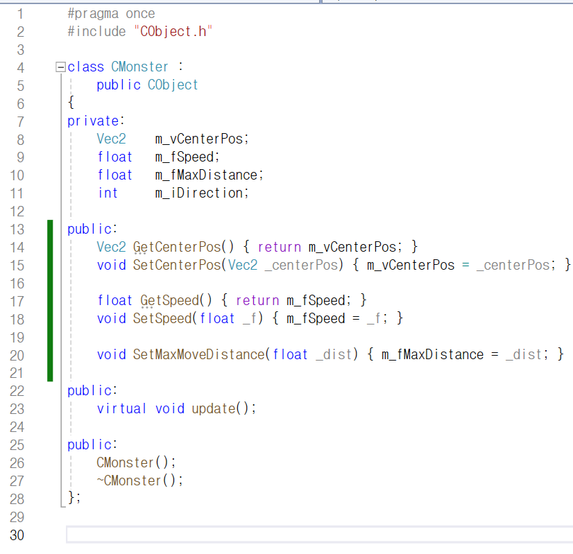 30번째 줄을 보시면 CMonster형 포인터를 선언하였고