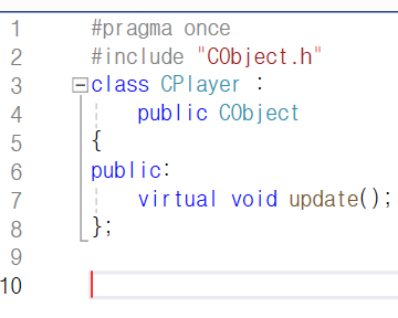 update 함수를 순수 가상 함수로 만들어 주었습니다.