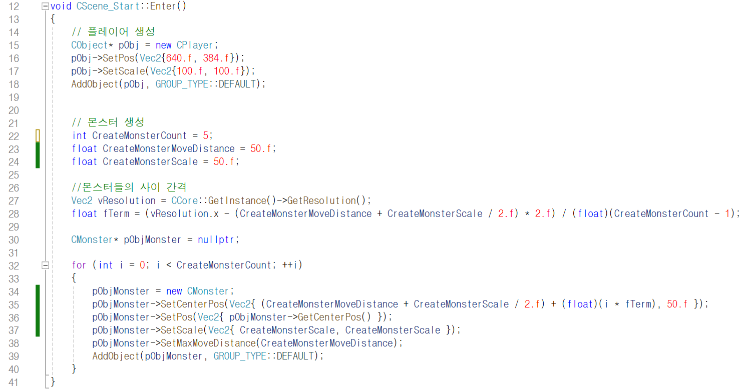 처음에는 22번째 줄에 의해 몬스터가 초당 100 픽셀을