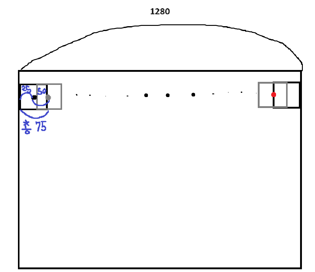 합한 값을 가장 왼쪽 몬스터의 x 좌푯값으로 하면 됩니다.