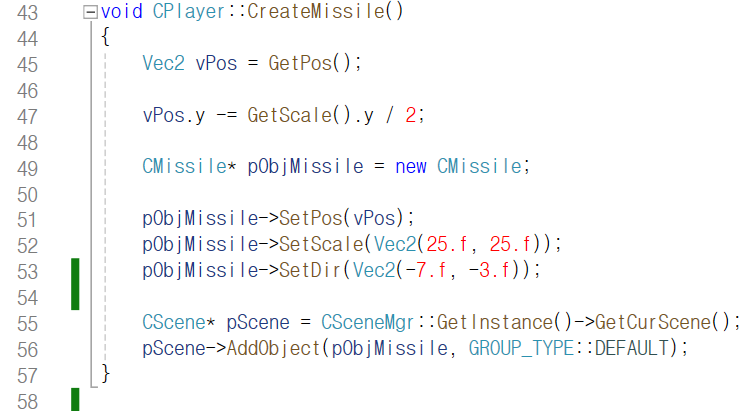 발사체를 생성하는 CreateMissile 함수를 봅시다.