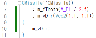 방향을 나타내는 멤버 m_vDir의