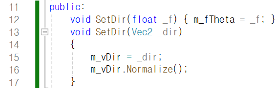 이렇게 정규화된 Vec2형 멤버 m_vDir의