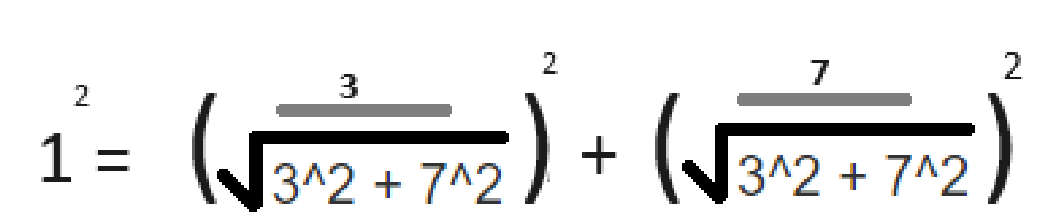 3^2 + 7^2 = 빗변^2 이므로,