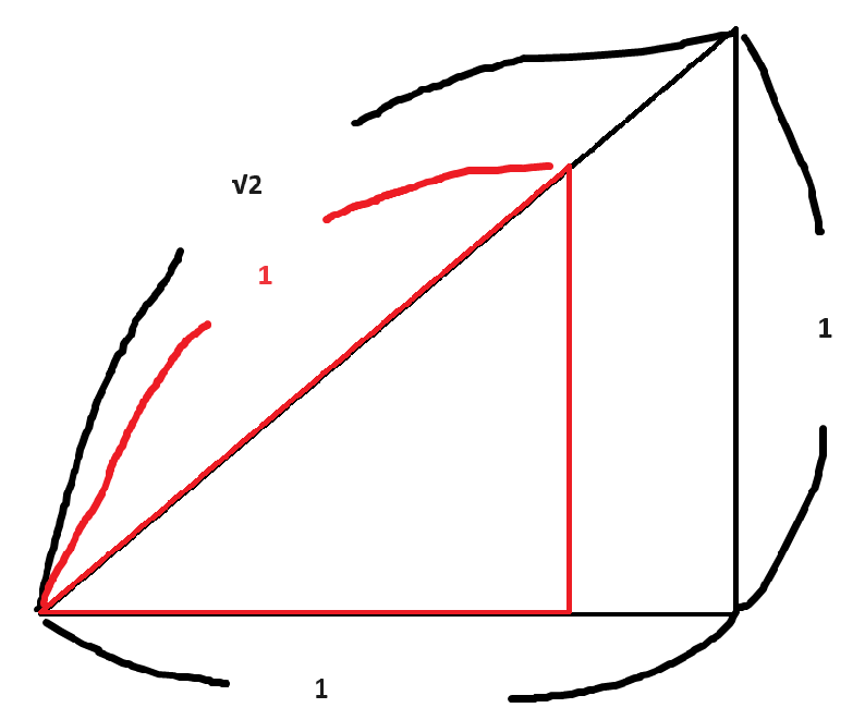 그리고 이때 빗변의 길이는 √2이므로