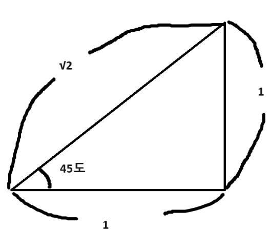세타가 45도인 직각삼각형은 곧,