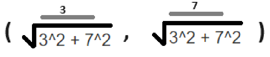 각 좌푯값을 빗변의 길이로 나누면 됩니다.