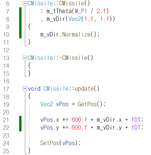 이를 CMissile 클래스에 정의를 해 보자면
