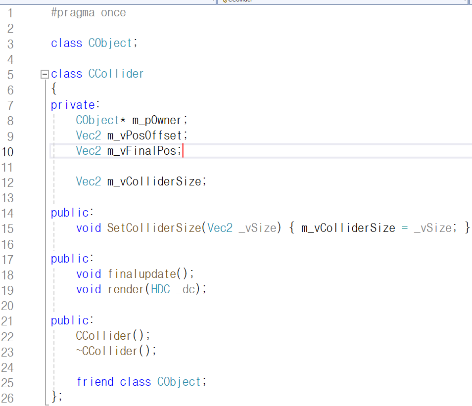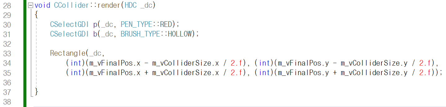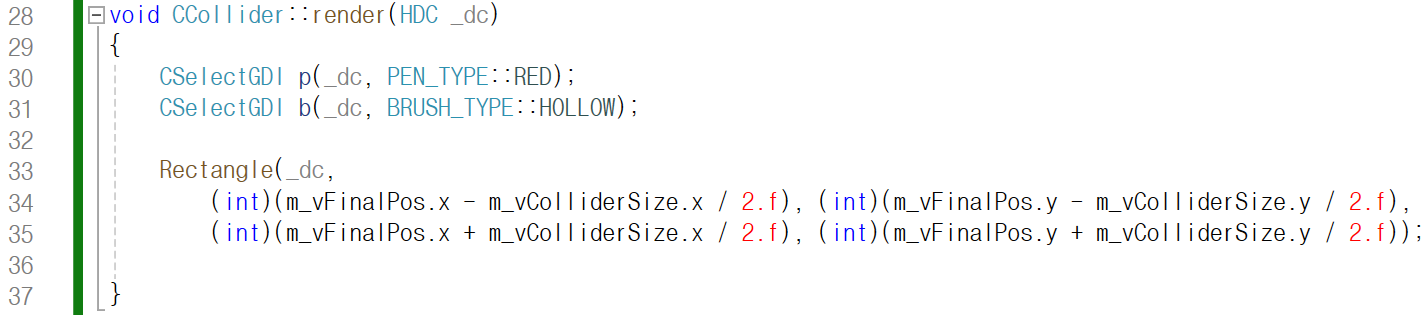 크기를 설정하기 위해 멤버 m_vColliderSize를 두었습니다.