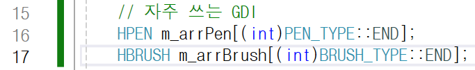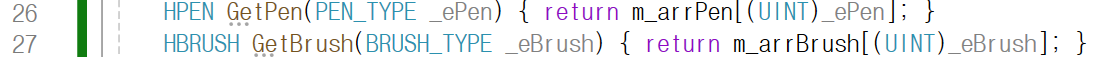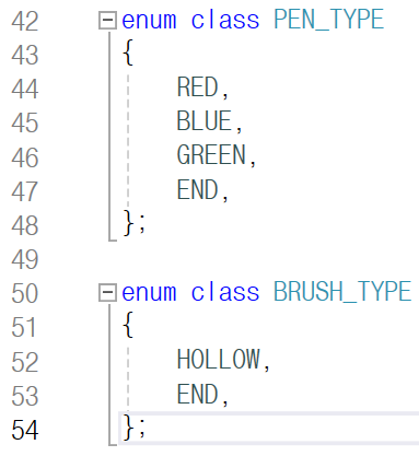 우선 펜과 브러쉬 관련하여 enum class를 만듭니다.