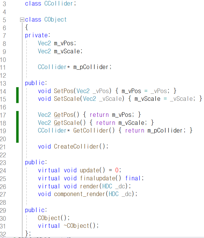 그래서 GetCollider 함수도 CObject 클래스에 있습니다.