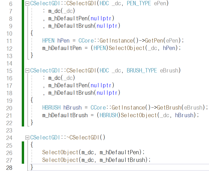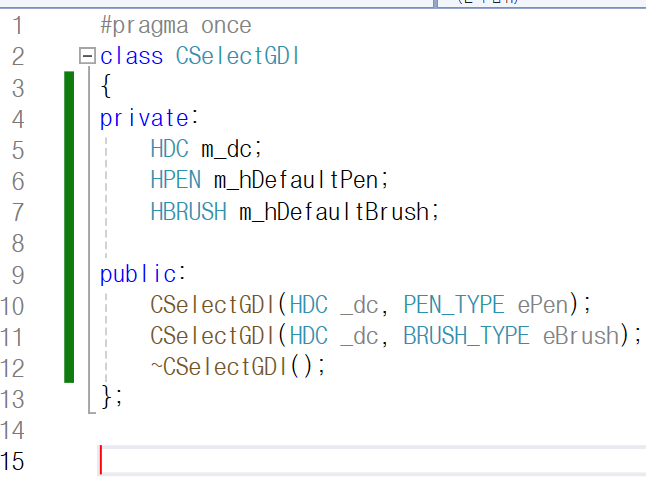이 복잡한 과정은 CSelectGDI 클래스를 만들고