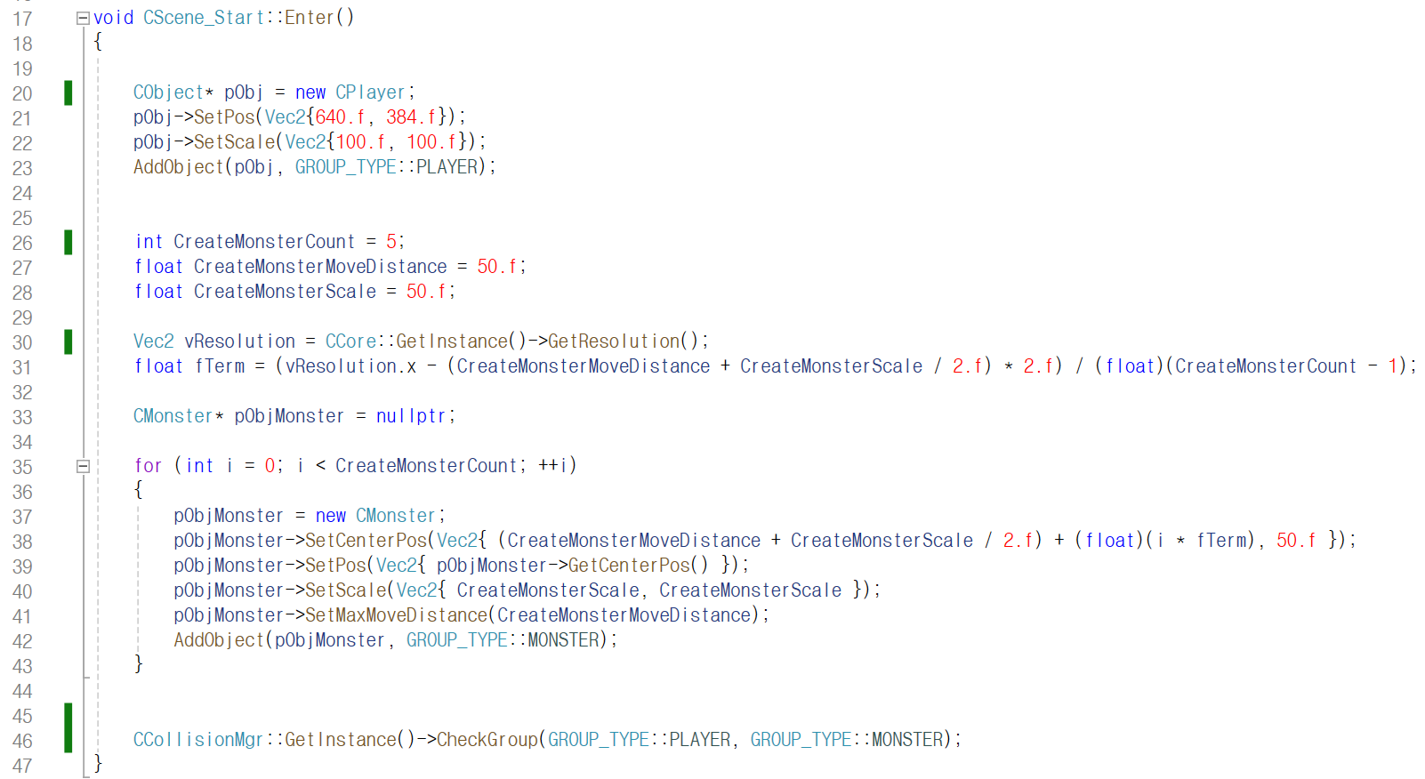 콜리전 매니저가 플레이어와 몬스터 그룹을