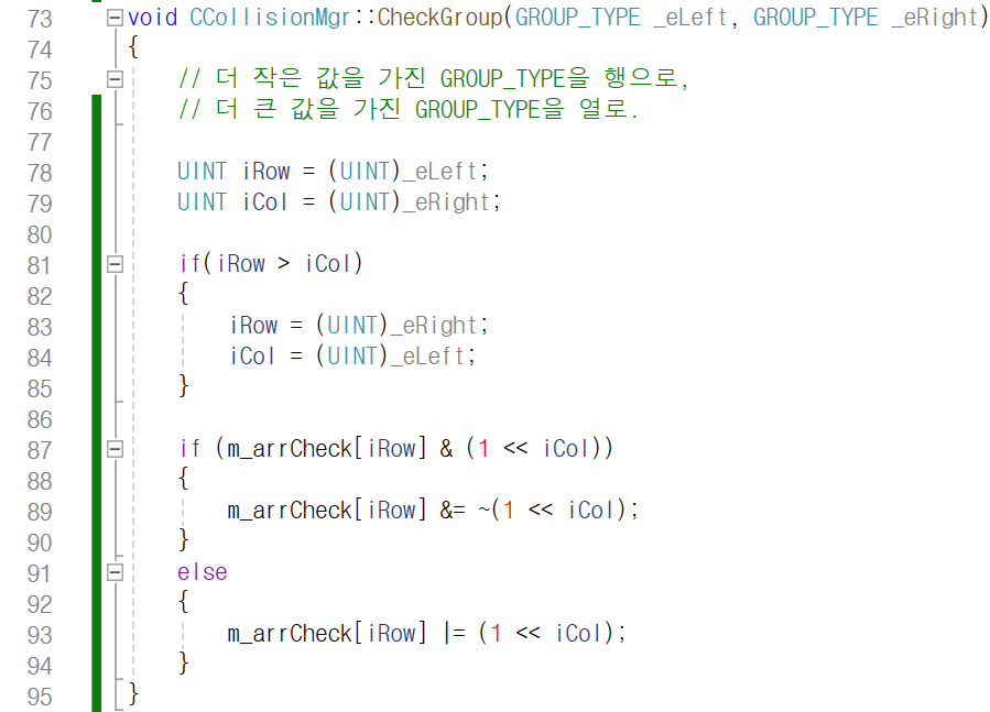 CheckGroup 함수는 콜리전 매니저의 멤버 함수로