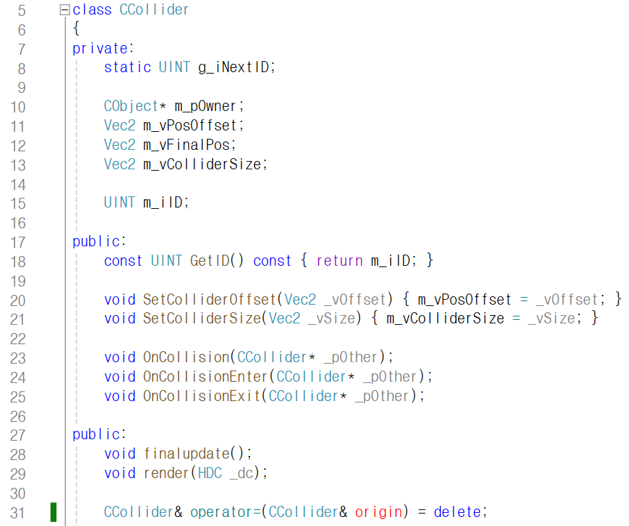 그리고 Collider의 기본으로 오버로딩된 대입 연산자를