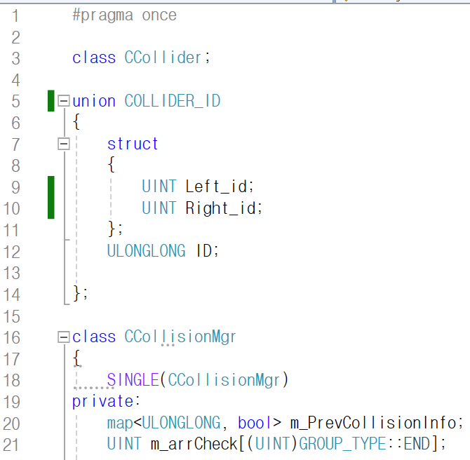 콜리전 매니저 클래스 상단에 선언하였습니다.