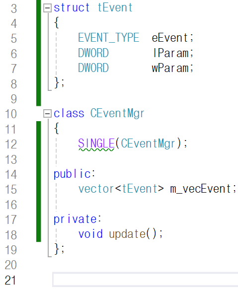 멤버 m_vecEvent를 두어 각종 이벤트를 vector에