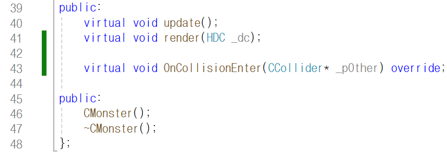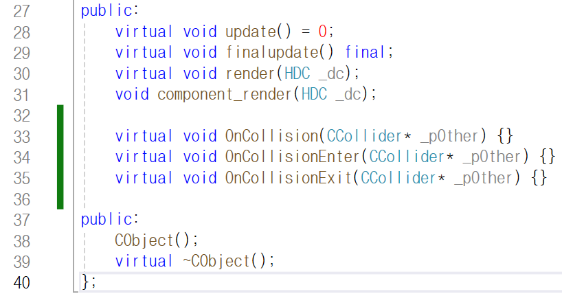 충돌 관련 함수들은 모두 virtual로 선언되었기 때문에