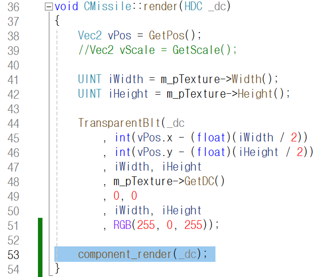 CMissile 클래스에서 오버라이딩하여 구현합니다.