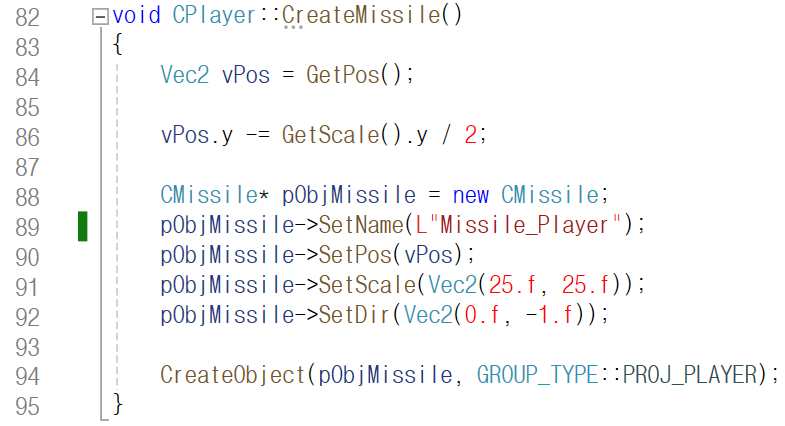 플레이어의 발사체를 발사하는 부분을 보았더니