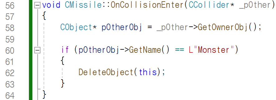 CObject 클래스에 존재하는 OnCollisionEnter 가상 함수를