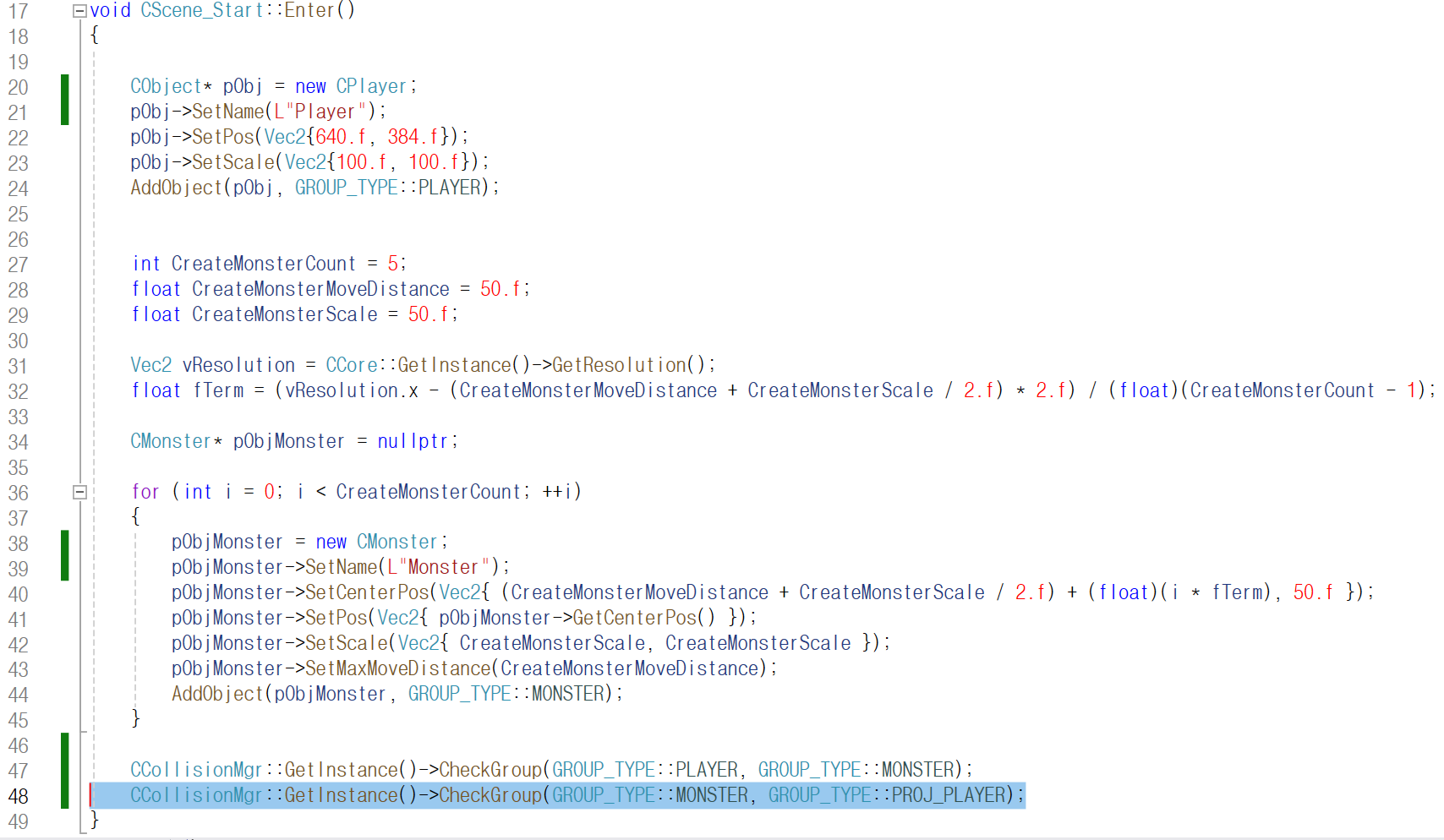 콜리전 매니저의 CheckGroup 함수를 호출하고 MONSTER와