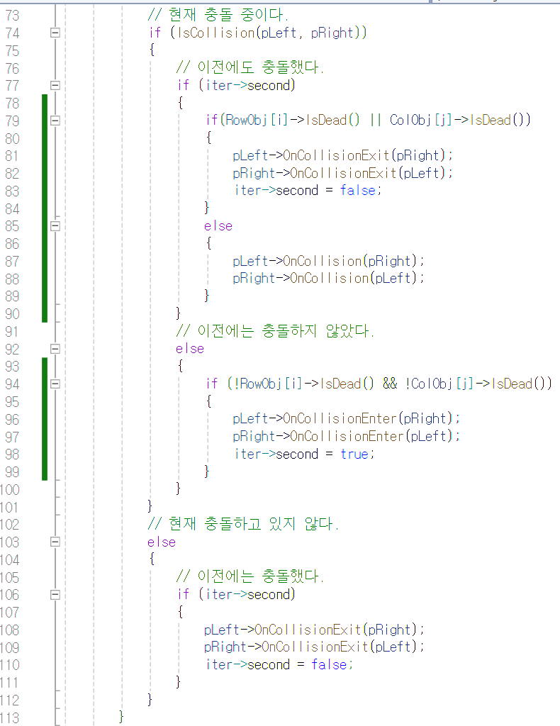 if 문을 통해 이전 프레임에서 충돌이 발생했고