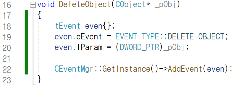 이벤트 매니저의 AddEvent 함수의 인자로 넘깁니다.