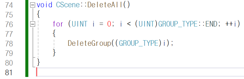 DeleteAll 함수는 CScene 클래스의 멤버 함수로,