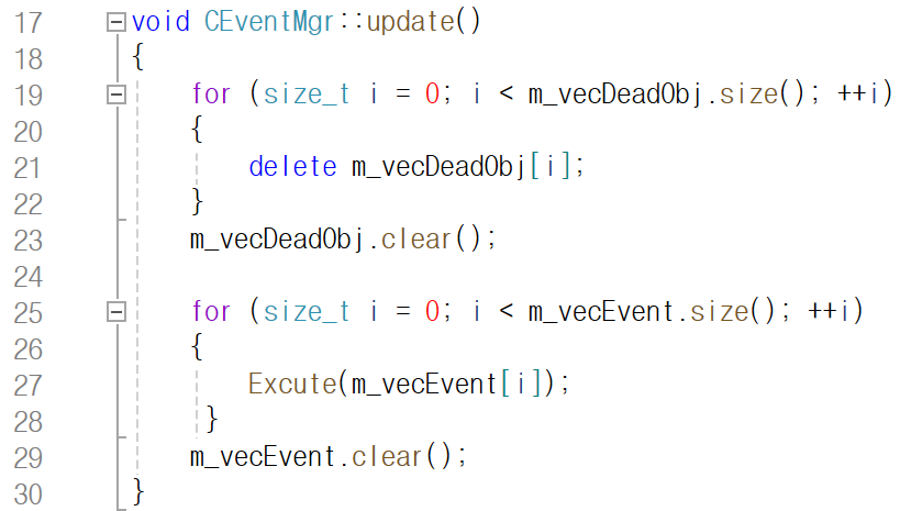 이벤트를 저장한 vector의 인덱스를 순회하면서