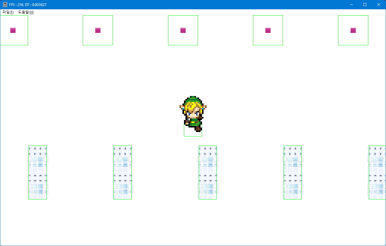 살짝 위쪽에 링크( 노랑머리 캐릭터 ) 텍스처가 출력되는 것을