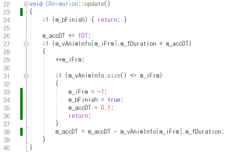 CAnimation 클래스의 update 함수를 수정하겠습니다.