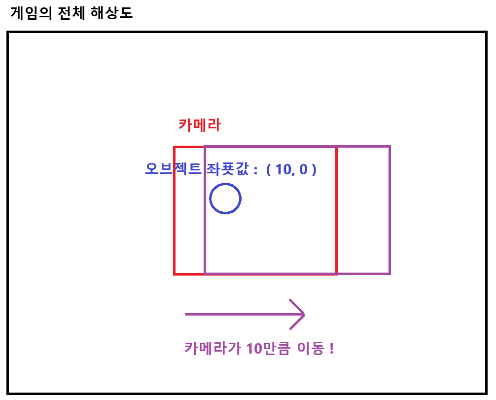 그려졌다면 카메라가 이동한 후에는 조금 더 왼쪽에