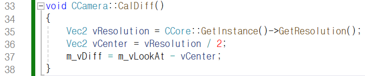 m_vDiff는 초기 화면에서 카메라가 현재 얼마나