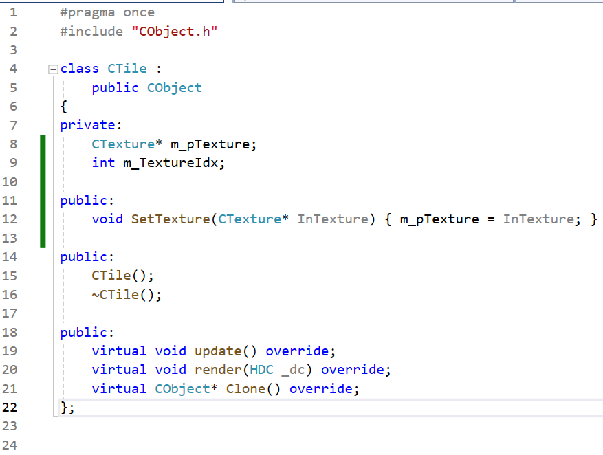 Tile 역할을 해 줄 CTile 클래스를 만듭니다.