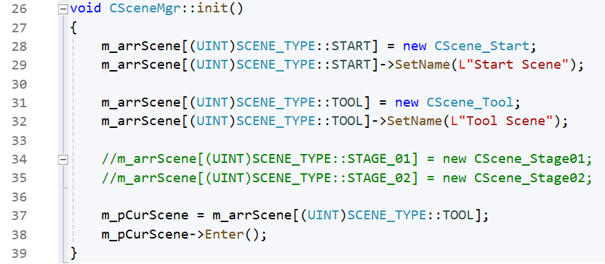 m_pCurScene에 m_arrScene[(UINT)SCENE_TYPE::TOOL]을