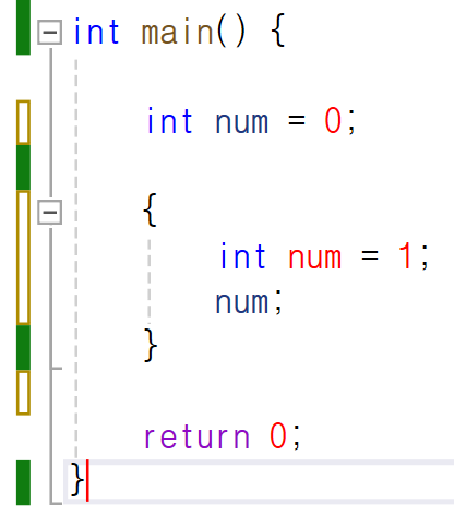 이 중괄호 사이의 int형 변수 num이 선언되었습니다.