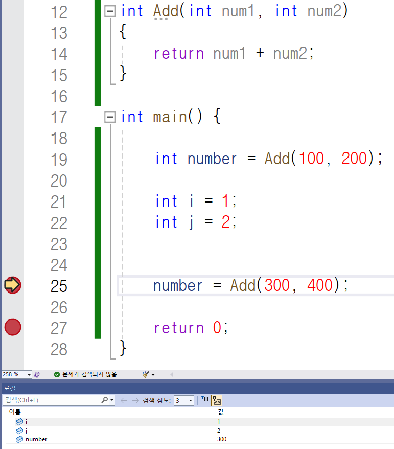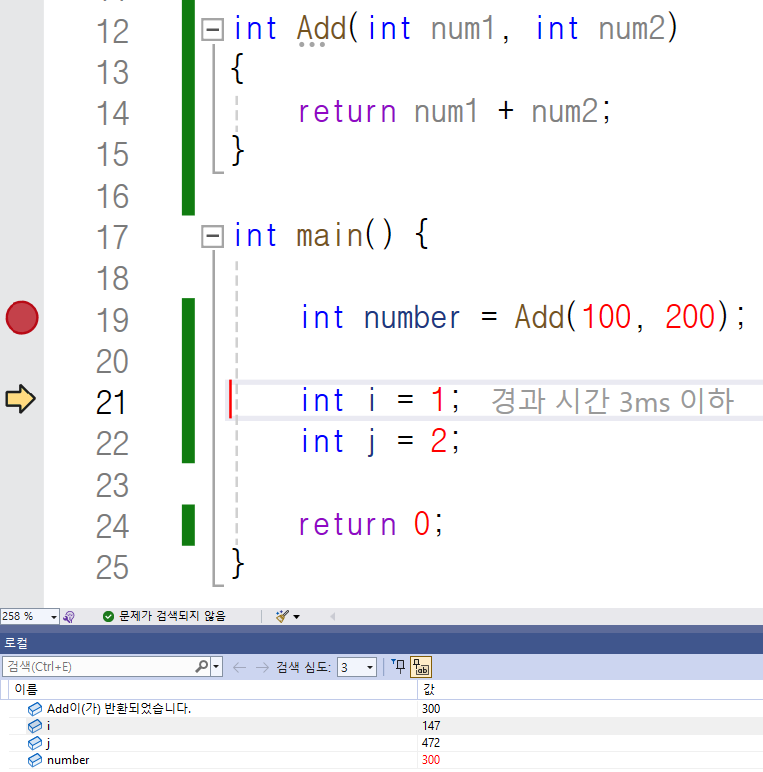 Add 함수를 통해 반환된 300이라는 값이 반환되었네요.