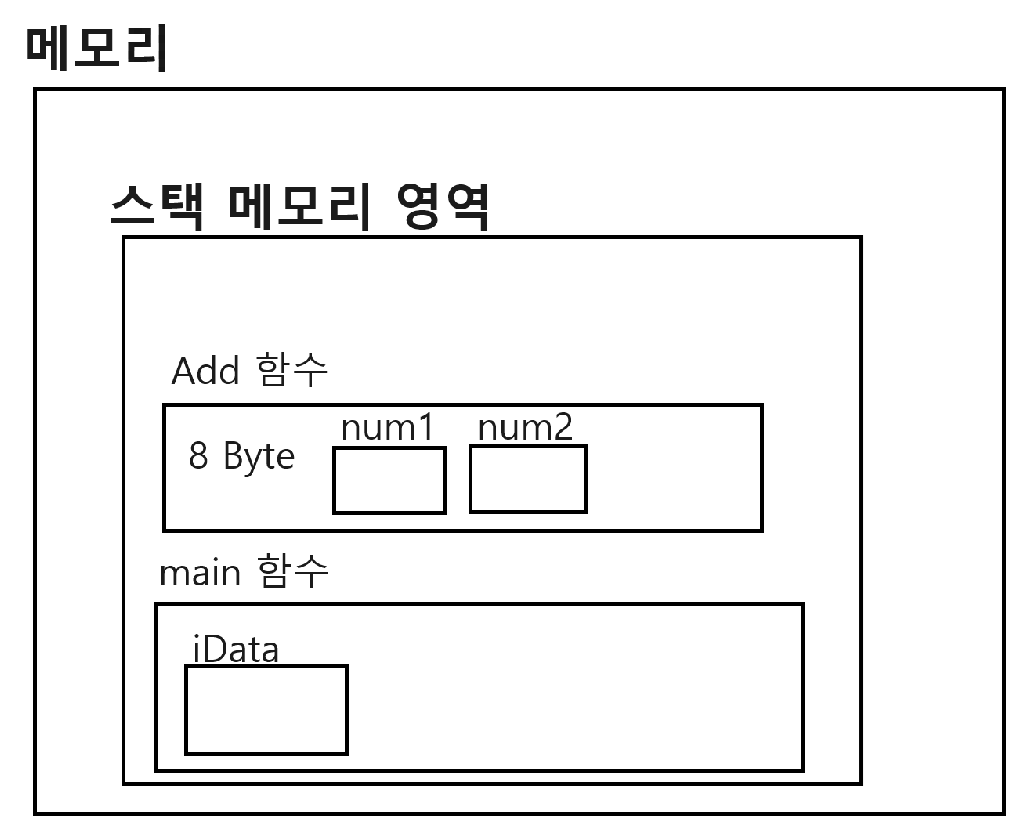 Add 함수는 호출되는 순간, 스택 메모리 영역에 할당되고