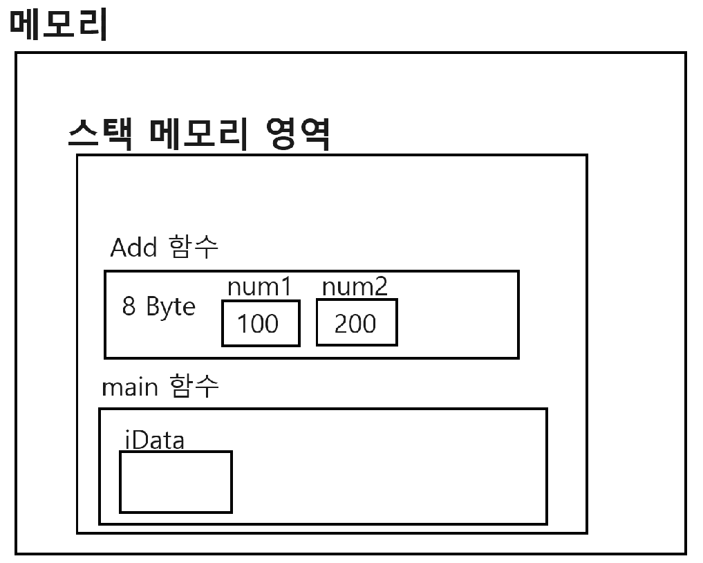 Add 함수는 호출되는 순간, 스택 메모리 영역에 할당되고