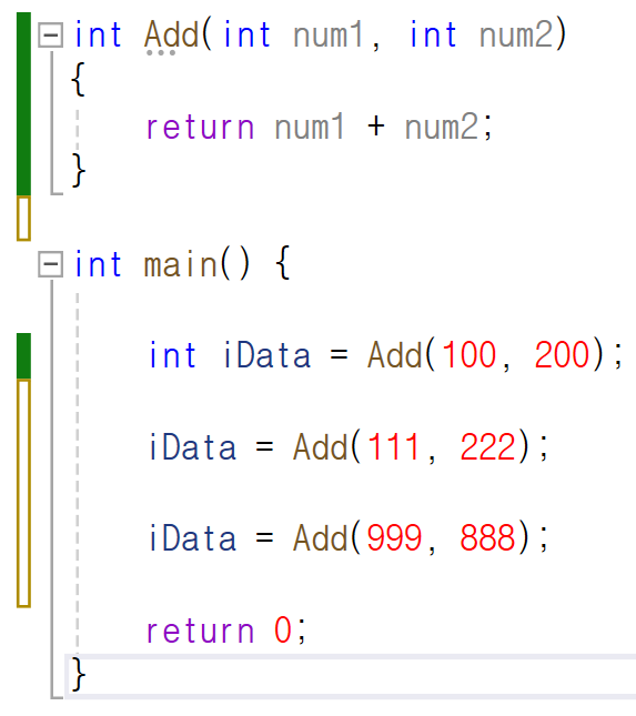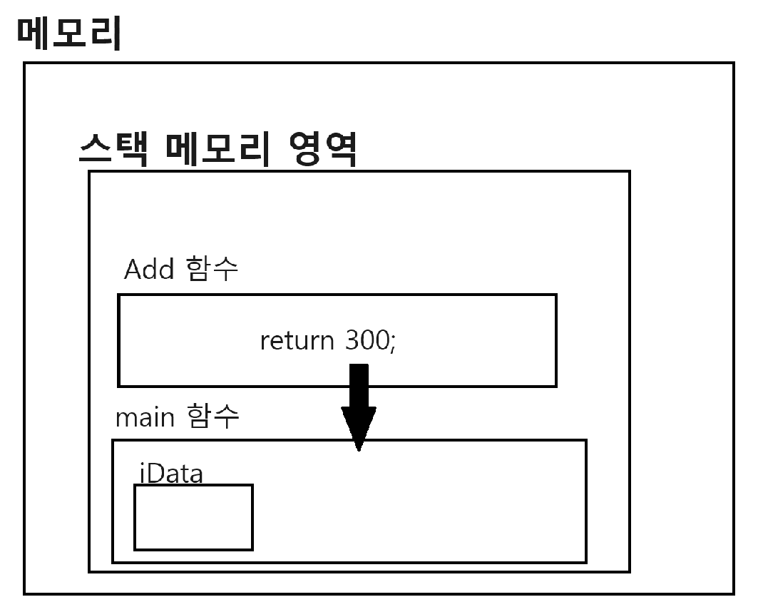 그러면 main 함수의 변수 iData에는 300이 대입되고,