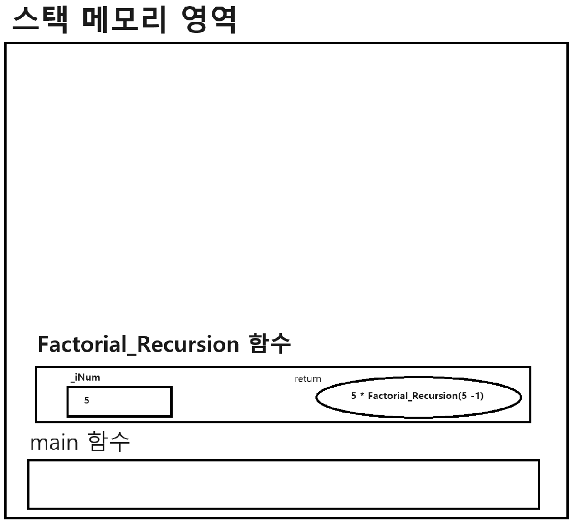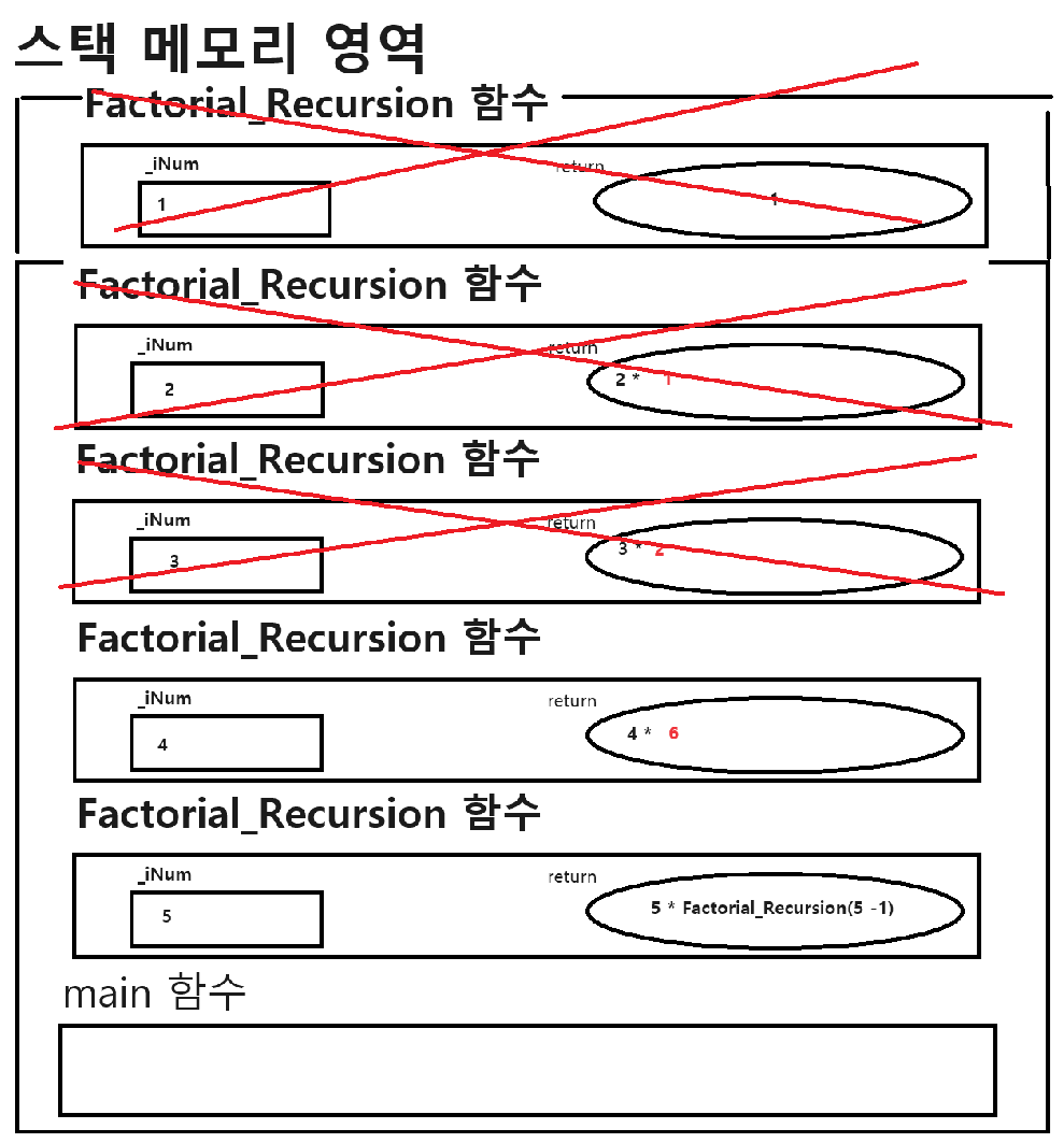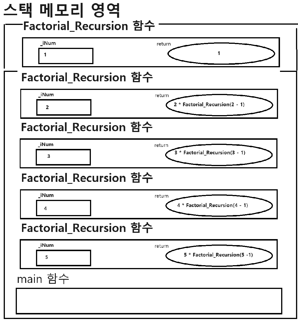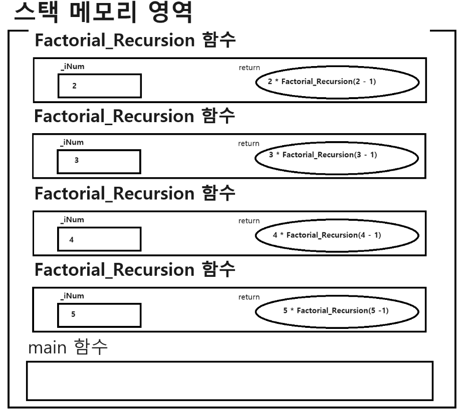 Factorial_Recursion 함수의 지역변수 _iNum에는 5가 들어갑니다.