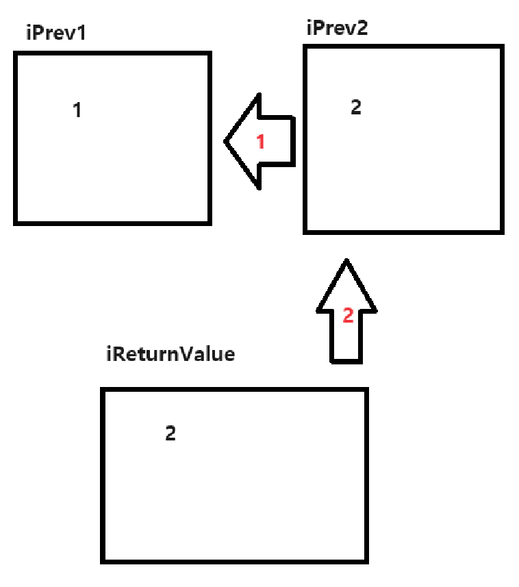 iReturnValue 값이 iPrev2에 대입되면서 iPrev2의 값을 2로 덮어씌웁니다.