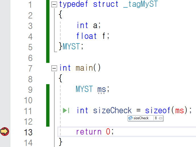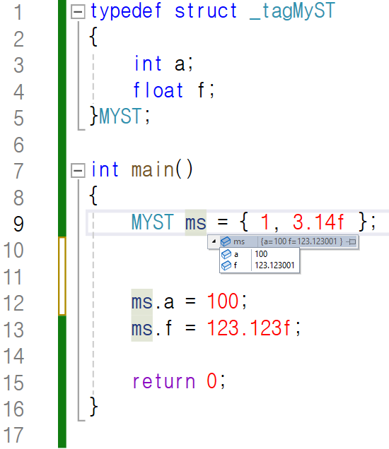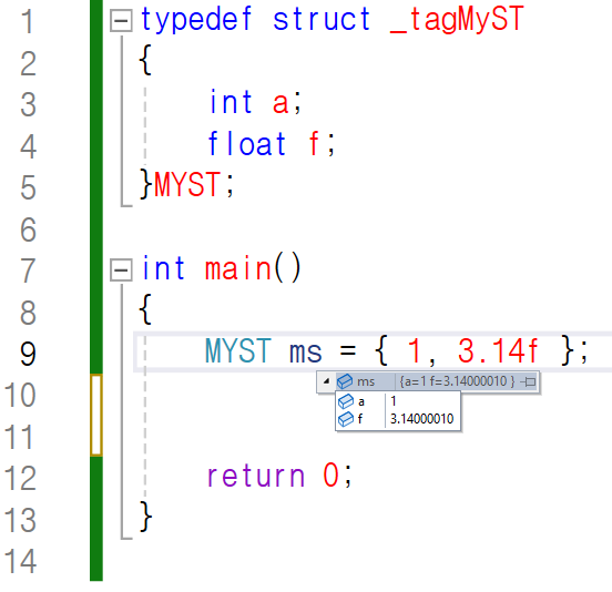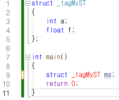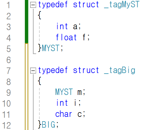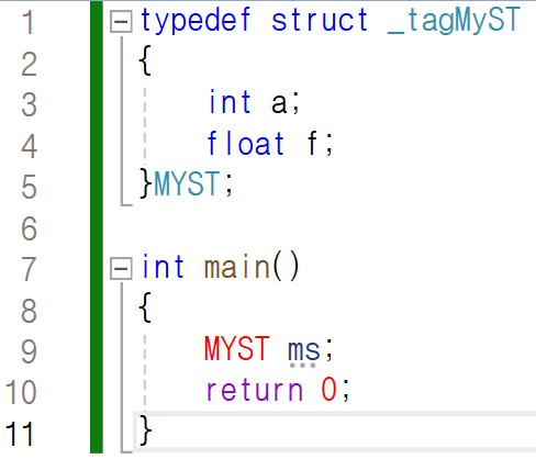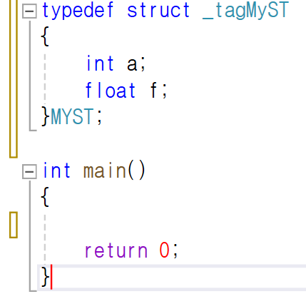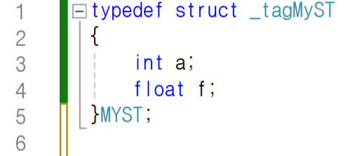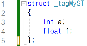 위 코드에서 _tagMyST 부분이 구조체(Struct)입니다.