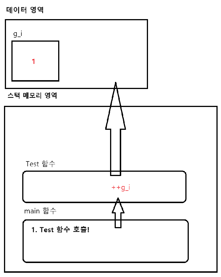 Test 함수에서 데이터 영역에 있는 전역 변수