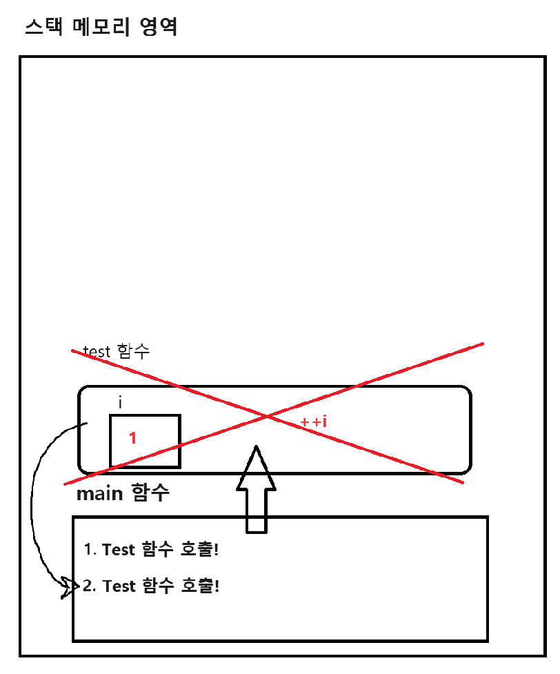 (물론 Test 함수가 호출할 때마다 변수 i를 0으로 초기화하기 때문에