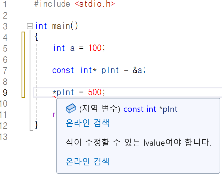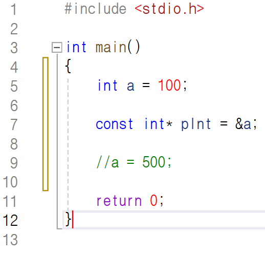그러므로 해당 포인터를 통해 변수의 값을 바꿀 수 없다.